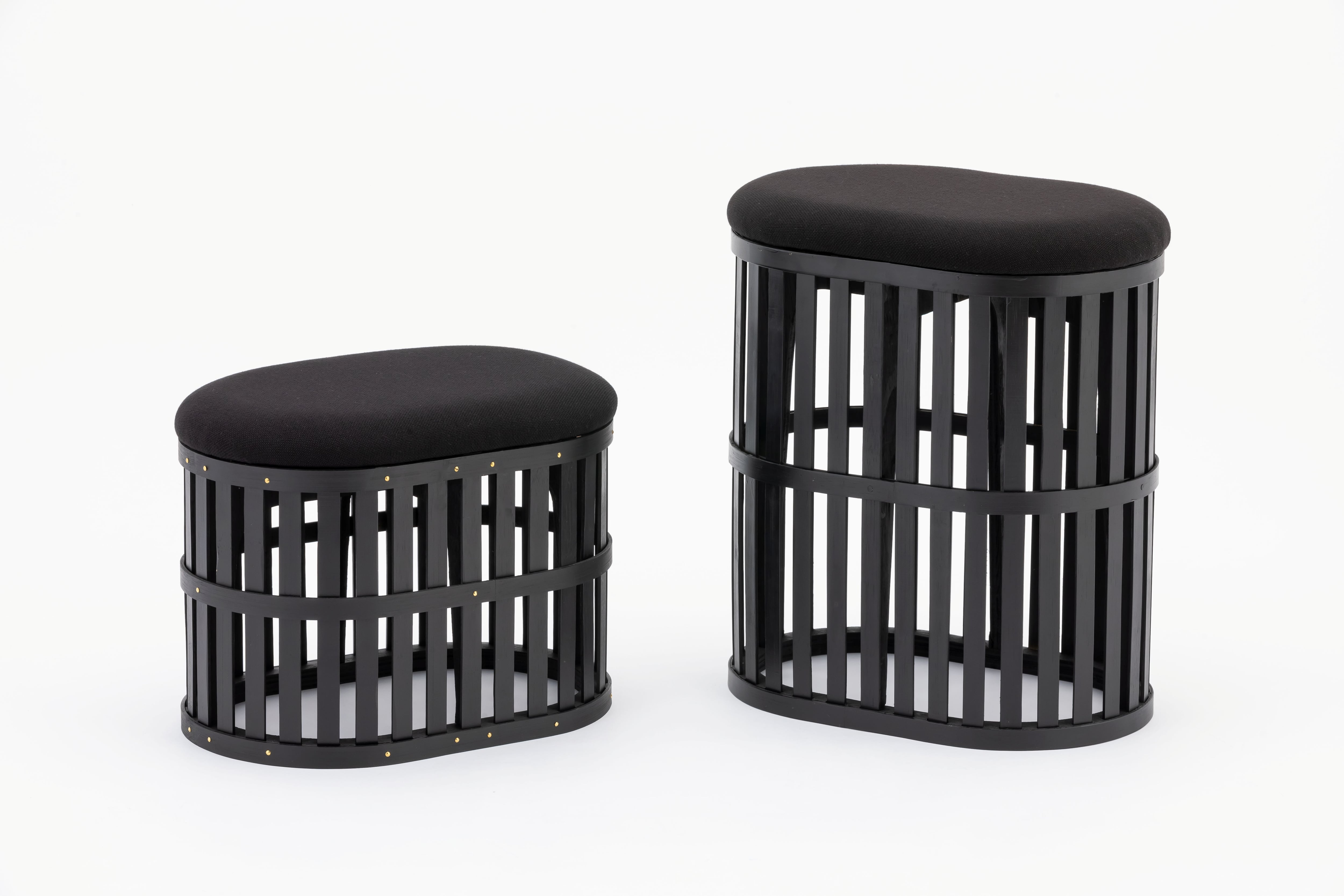素材:竹、合板、布、ウレタンスポンジ、真鍮、スチール、染料、ウレタン塗装